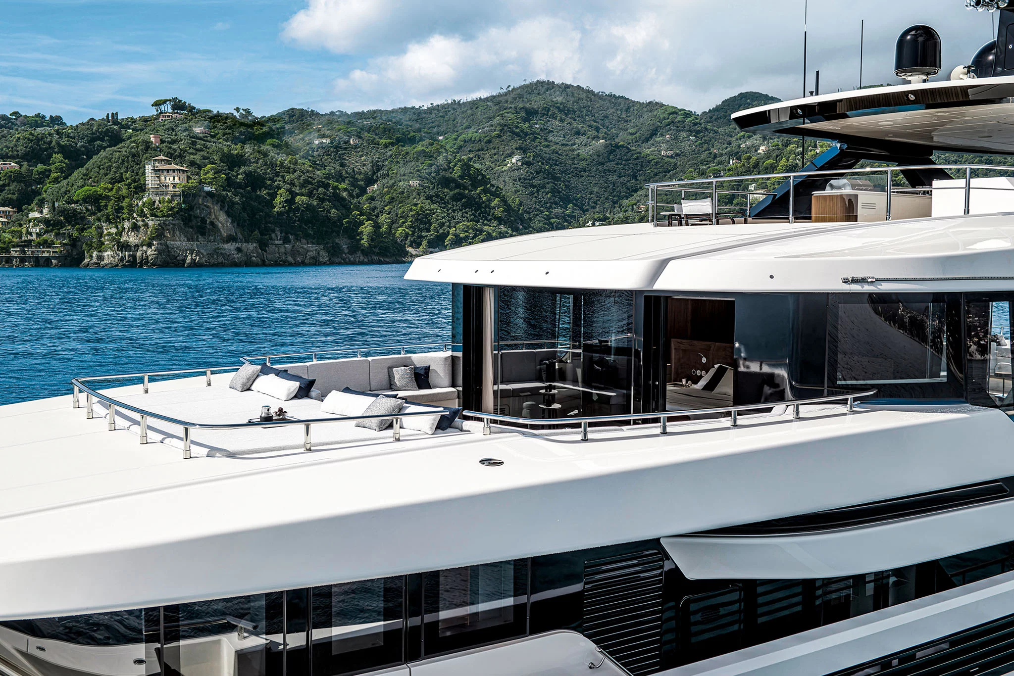 The Custom Line Navetta 50 is the latest flagship in Custom Line's displacement yacht range, measuring 49.9 metres in length with a 9.6-metre beam. Constructed entirely from aluminium, this superyacht features an innovative design that combines elegance and efficiency, reducing fuel consumption by 10 to 15%.