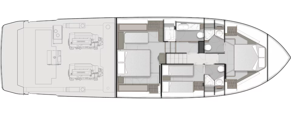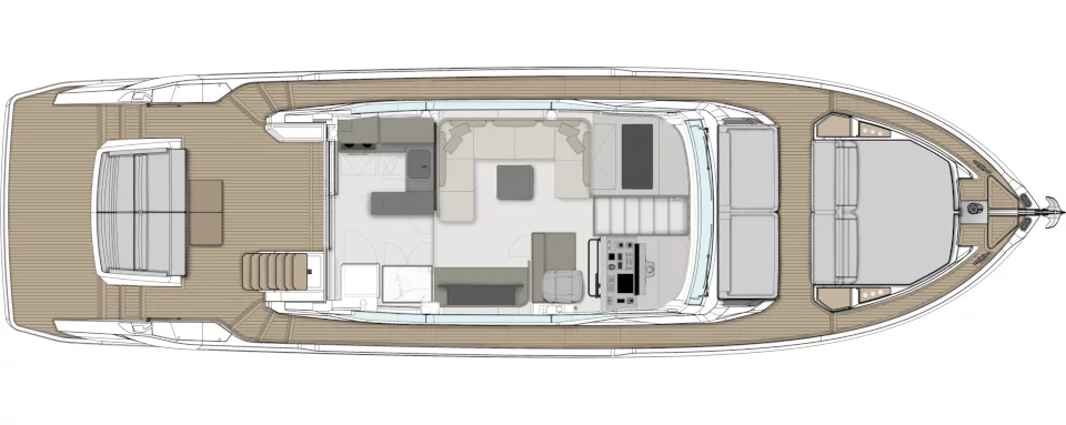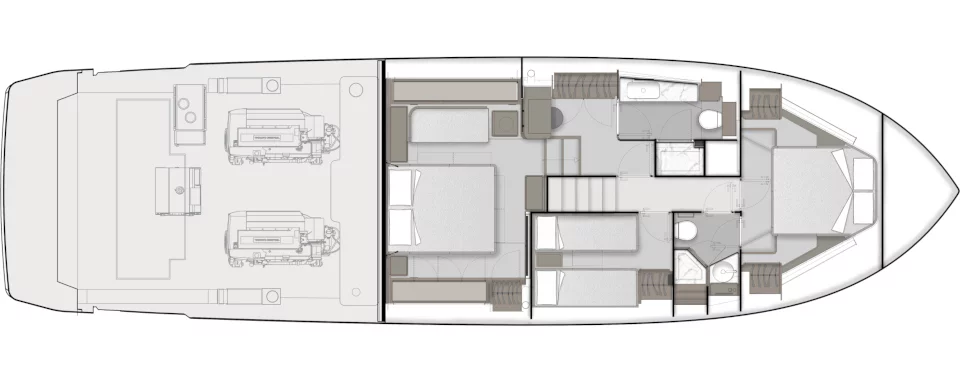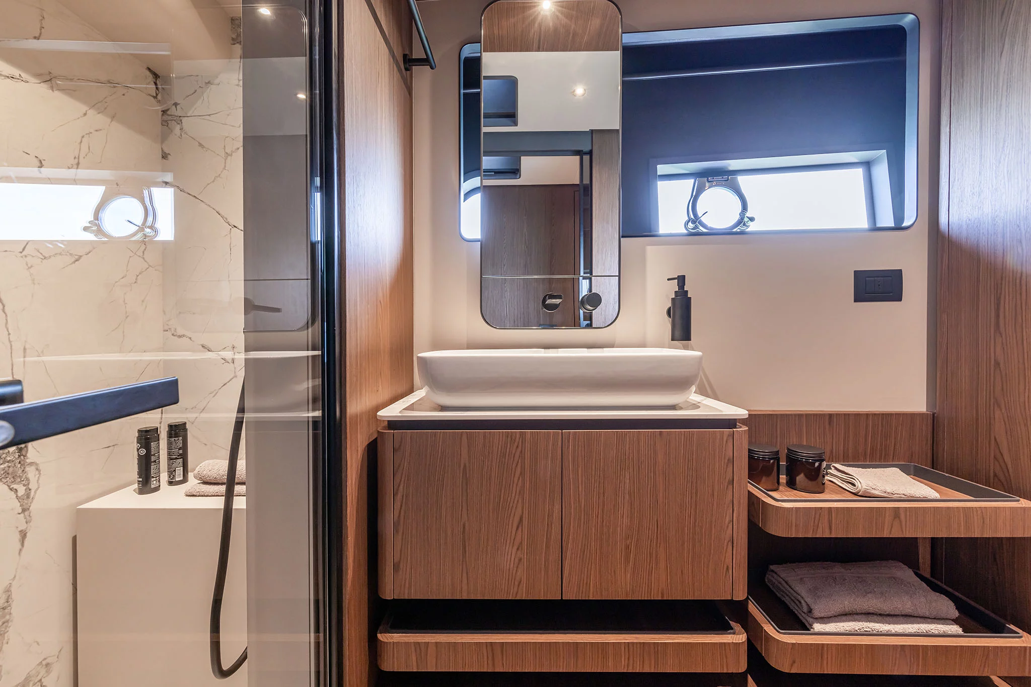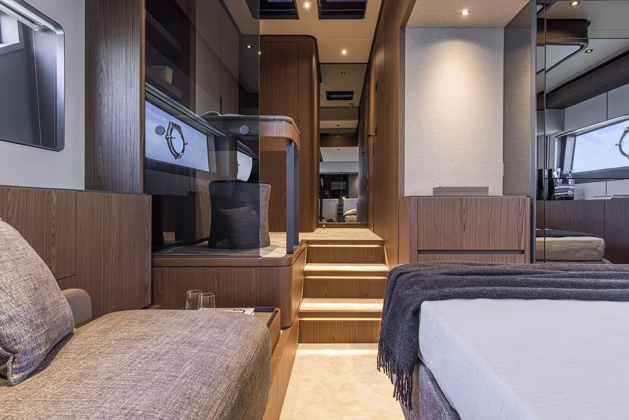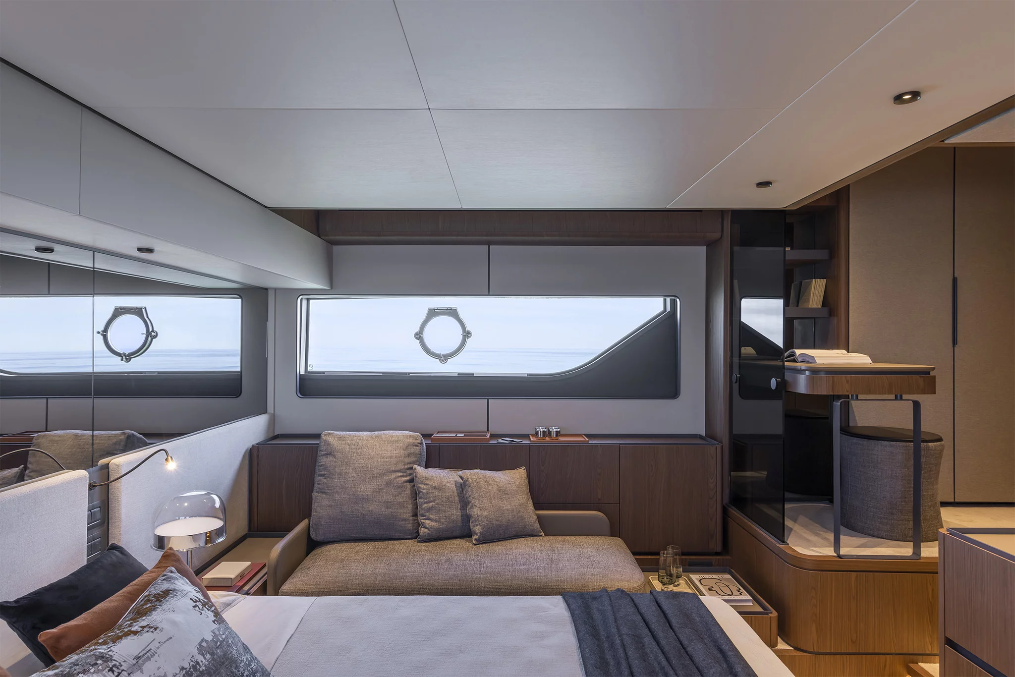 Measuring 18 metres in length, this model stands out for its contemporary design and fluid lines, crafted to maximise space and functionality.