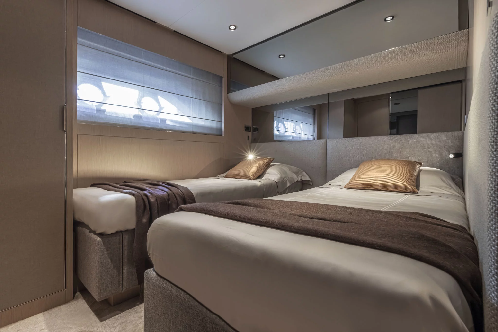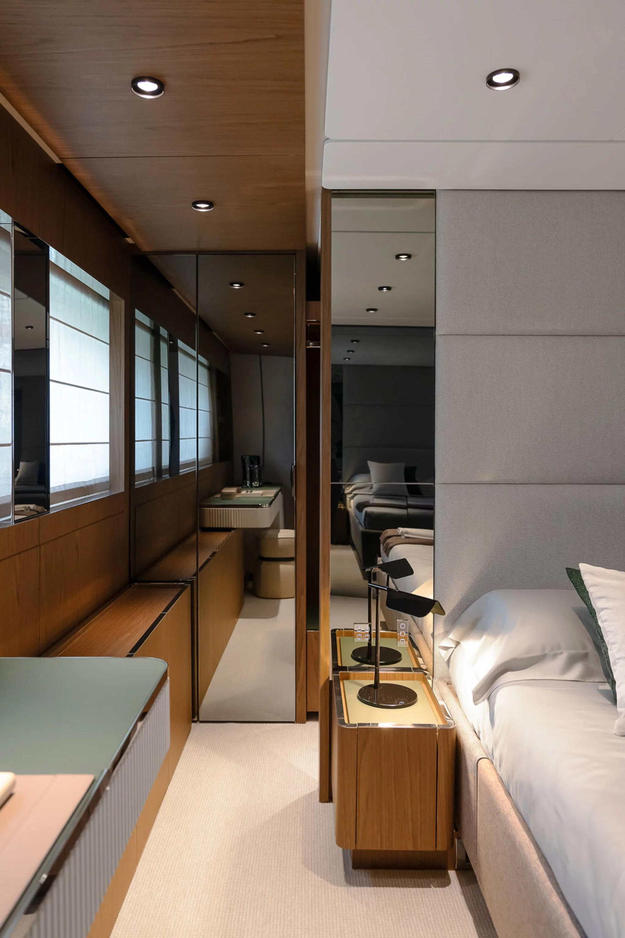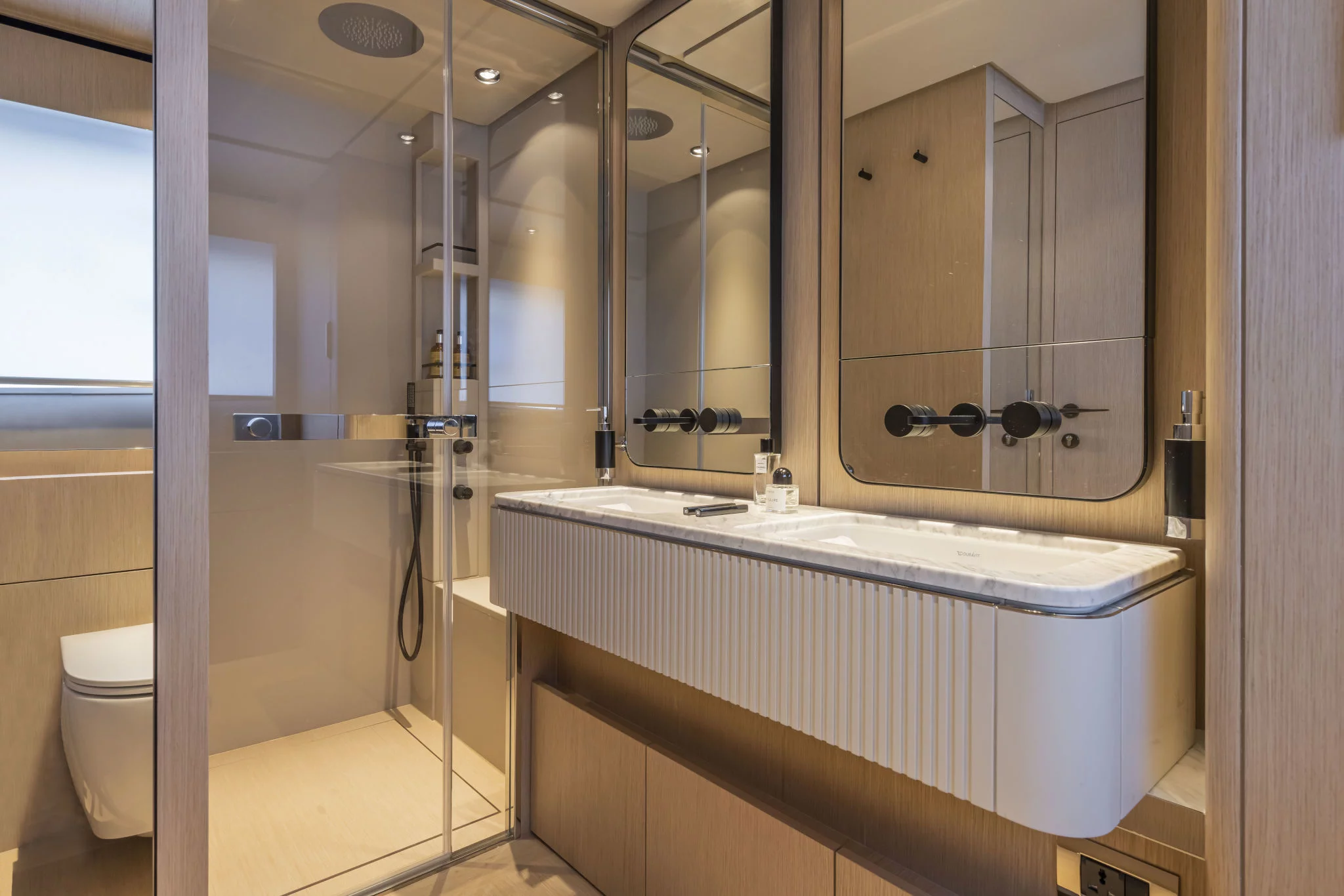 Inside, the yacht offers four luxurious cabins, including a master suite, all finished to the highest standards. Owners can choose between two design styles: classic or contemporary.