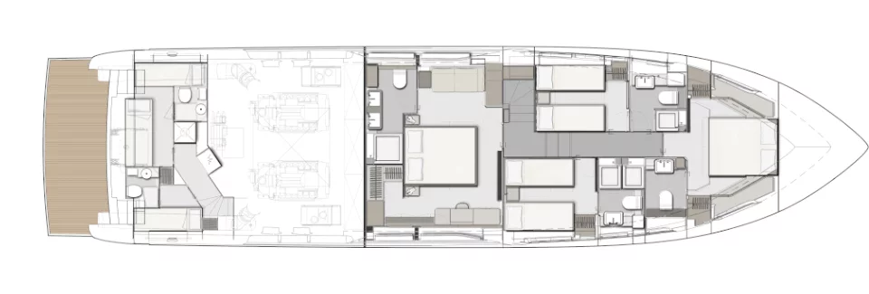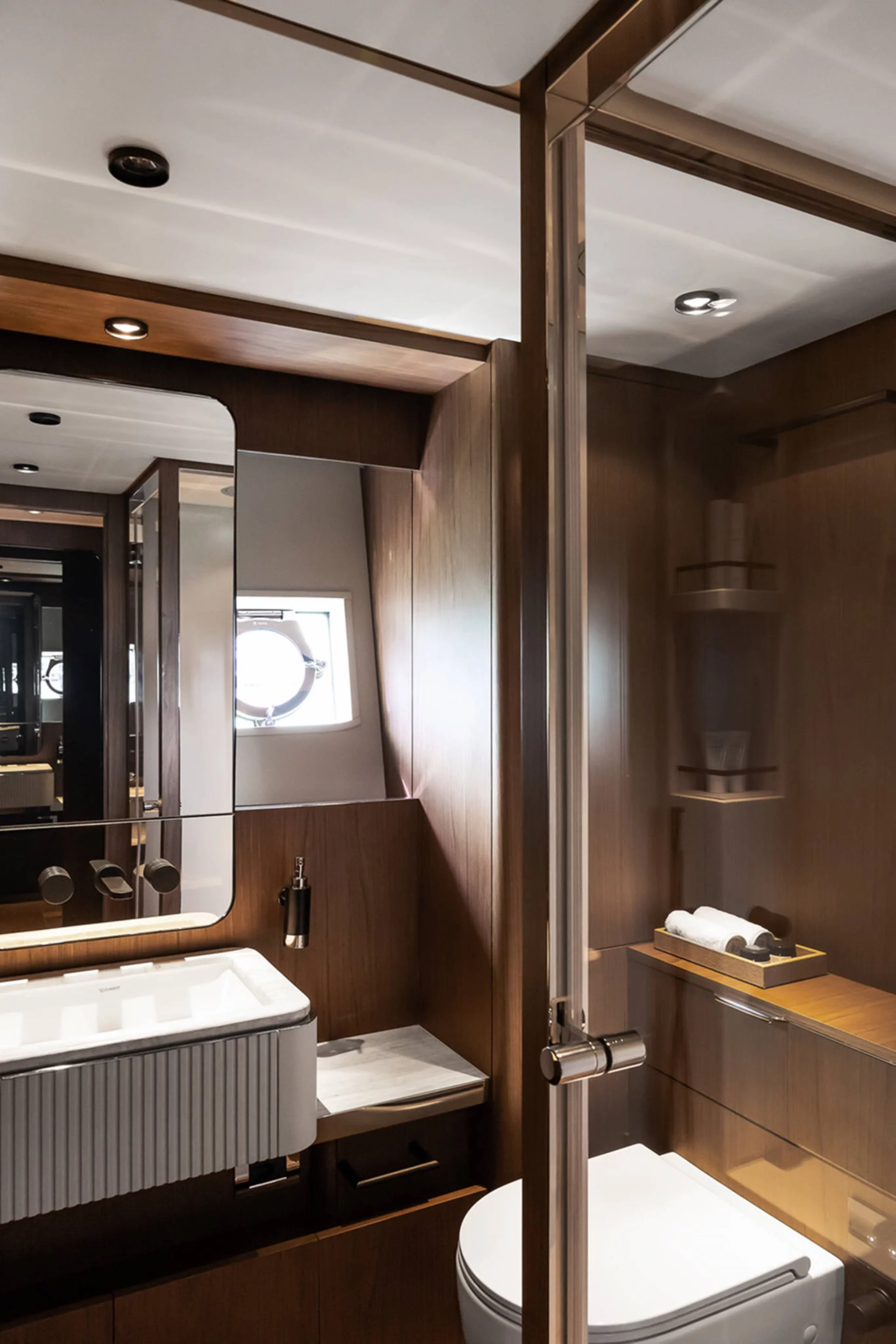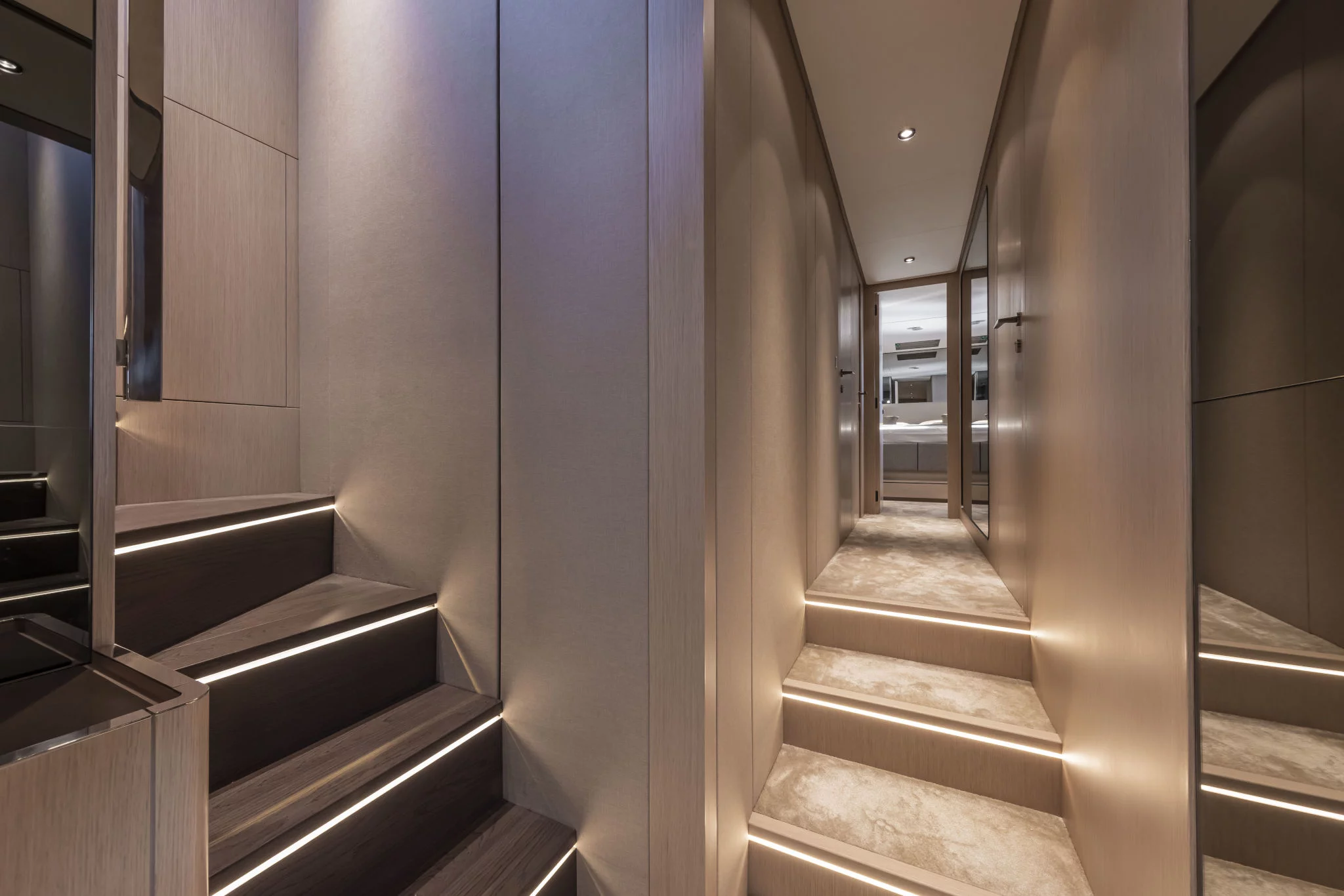 Inside, the yacht offers four luxurious cabins, including a master suite, all finished to the highest standards. Owners can choose between two design styles: classic or contemporary.
