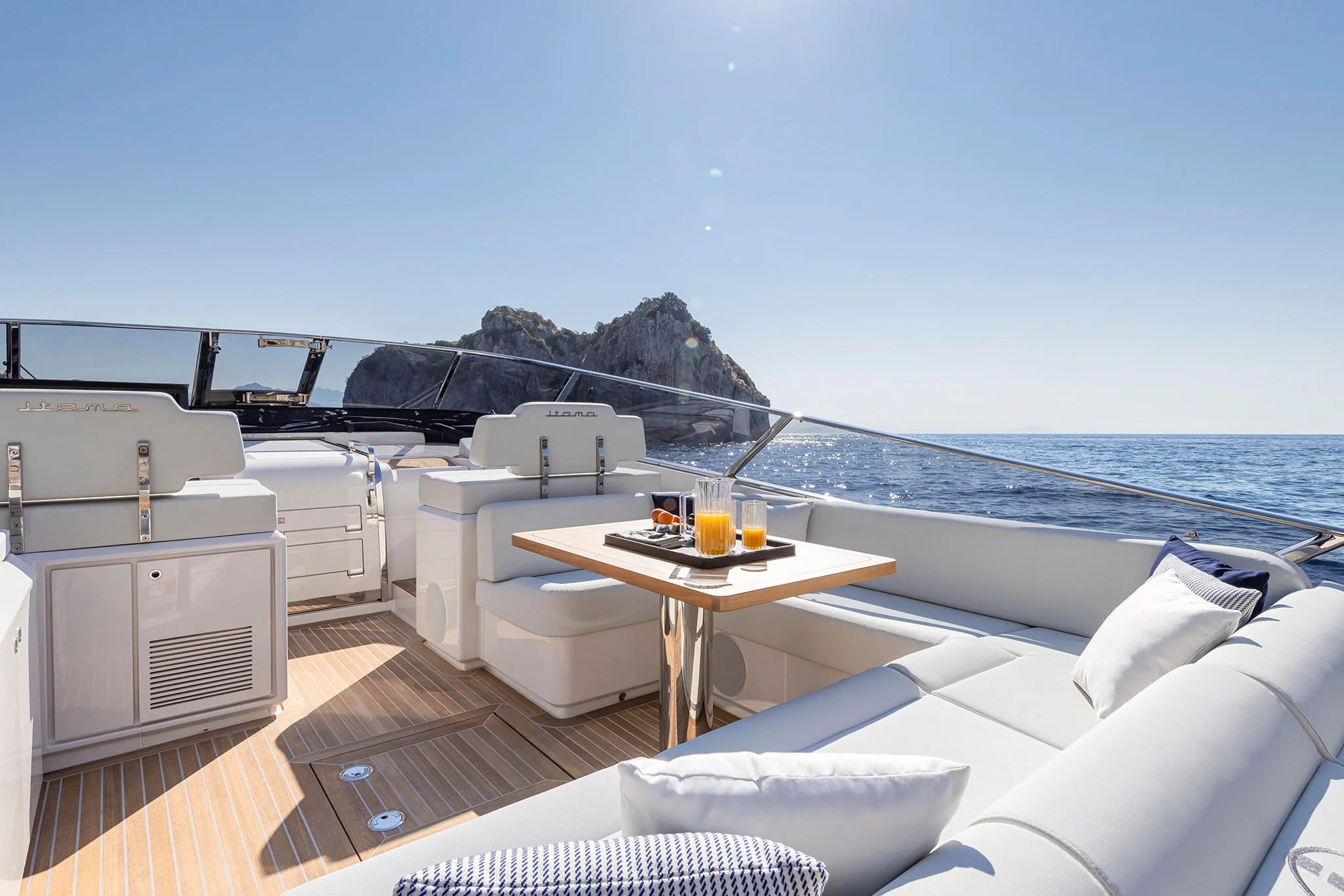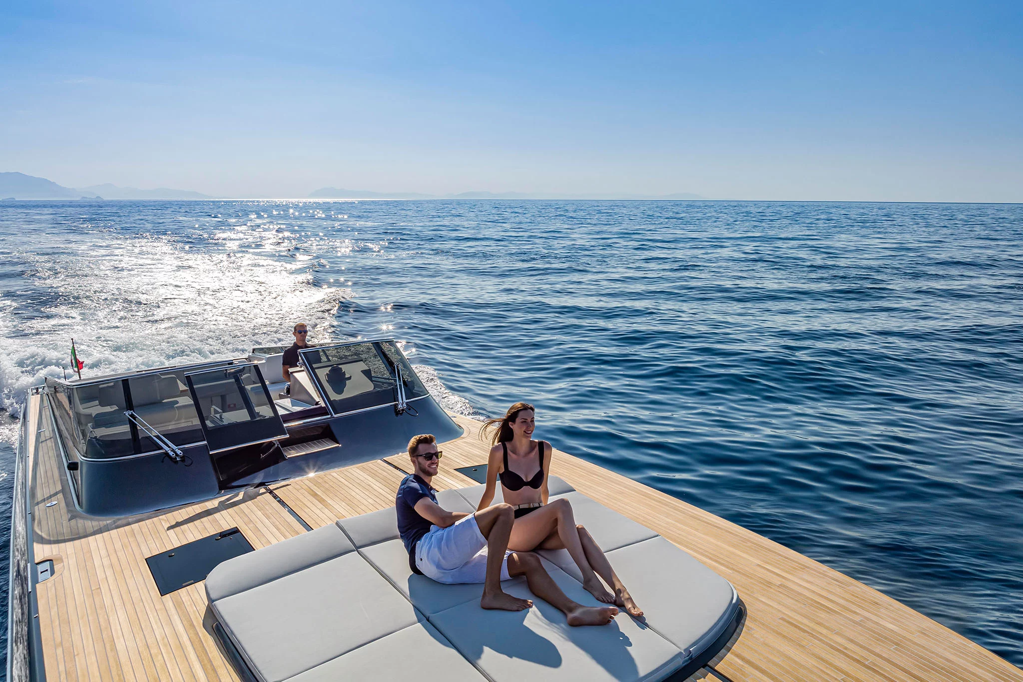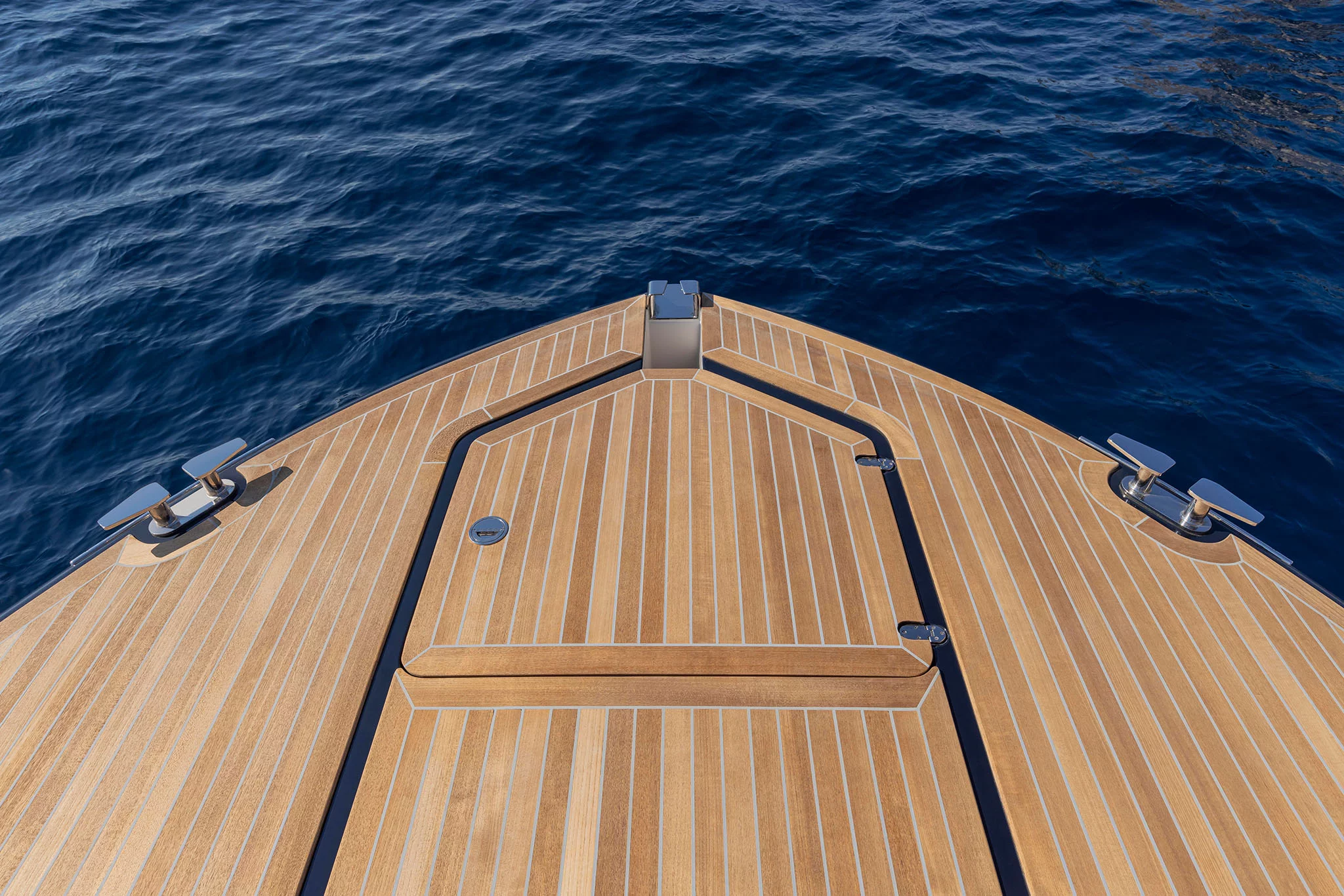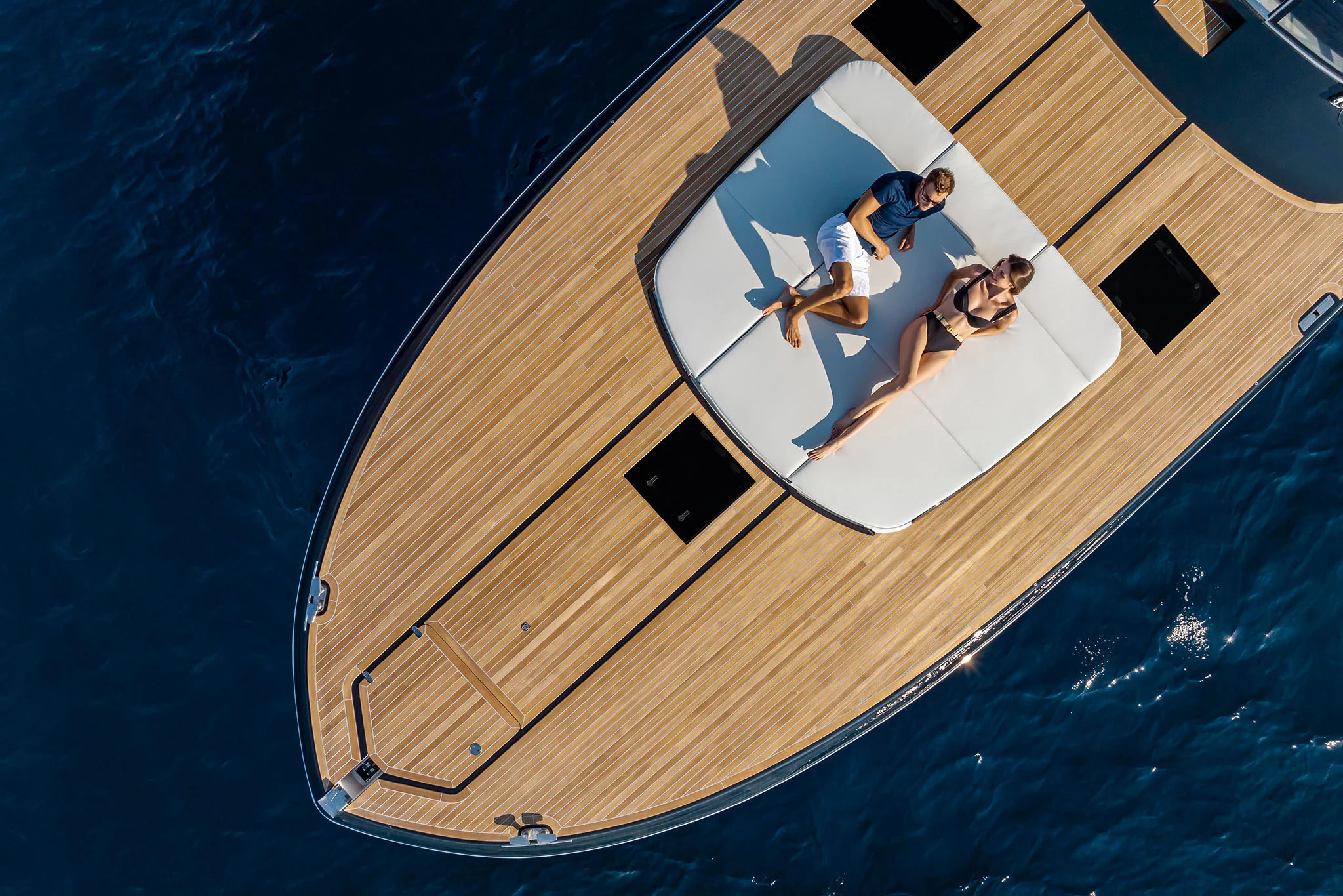 The yacht is uniquely personalisable, offering owners the chance to choose the hull colour and foredeck layout to best reflect their aesthetic taste.