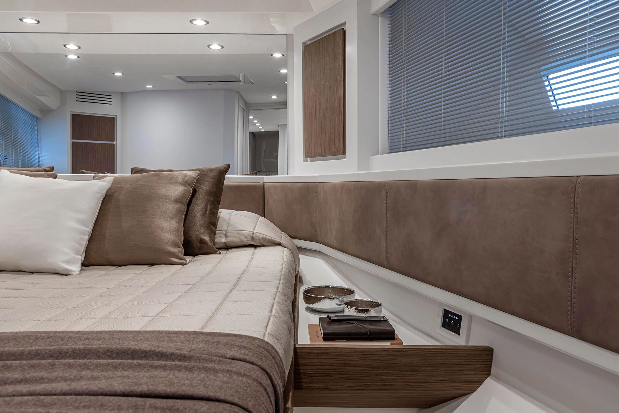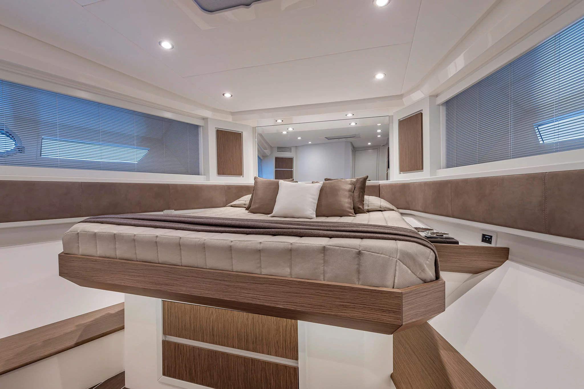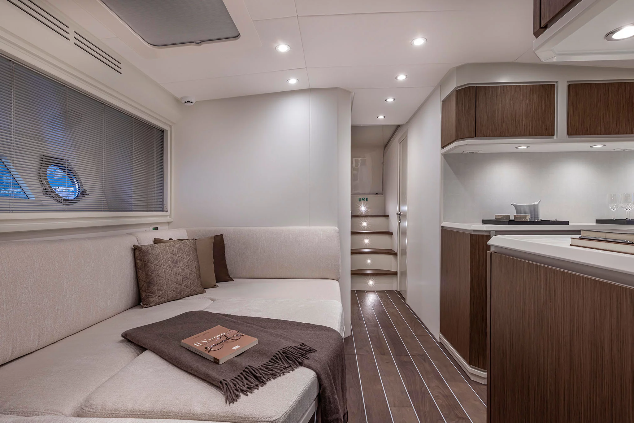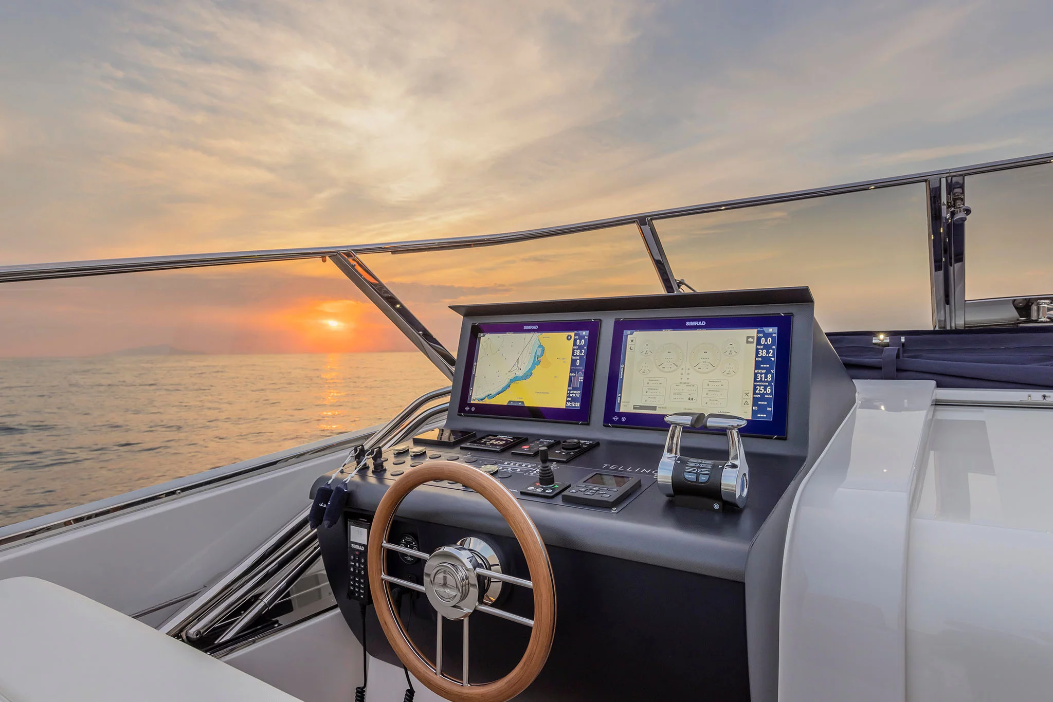 The yacht is uniquely personalisable, offering owners the chance to choose the hull colour and foredeck layout to best reflect their aesthetic taste.
