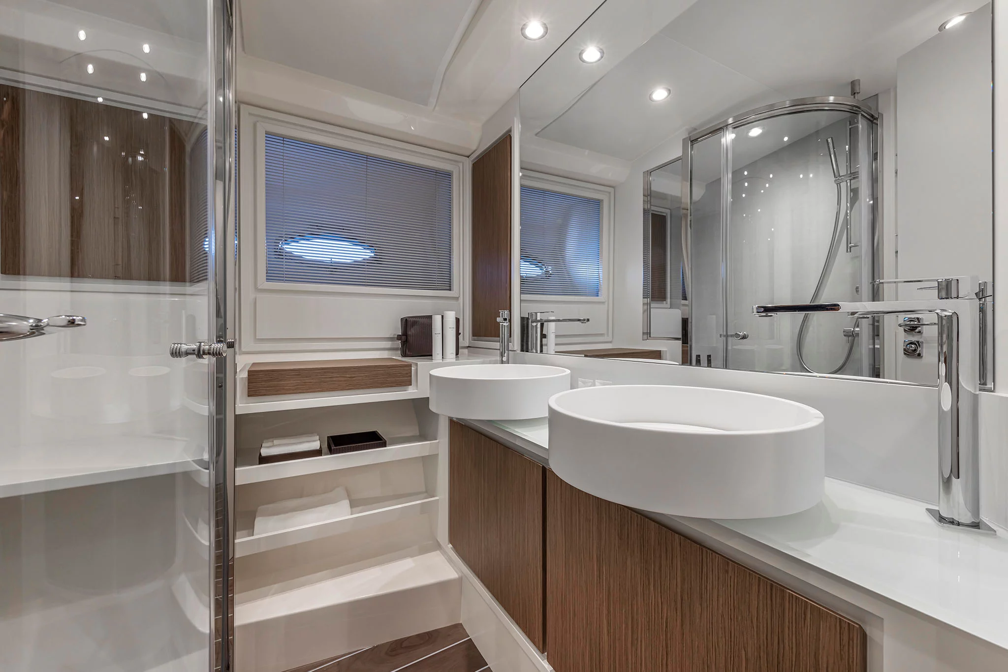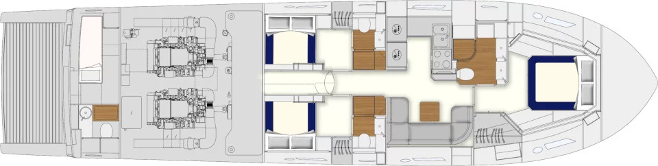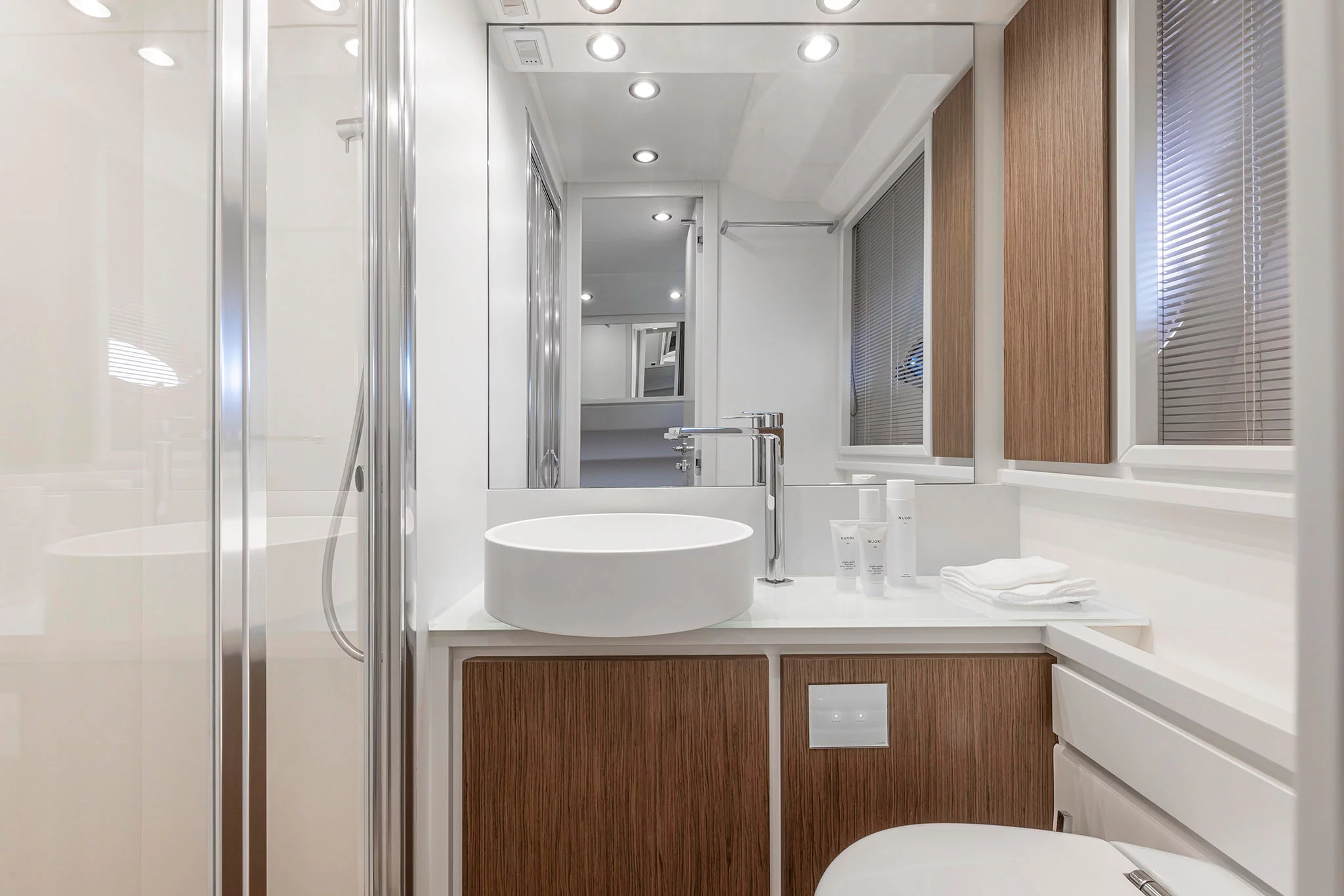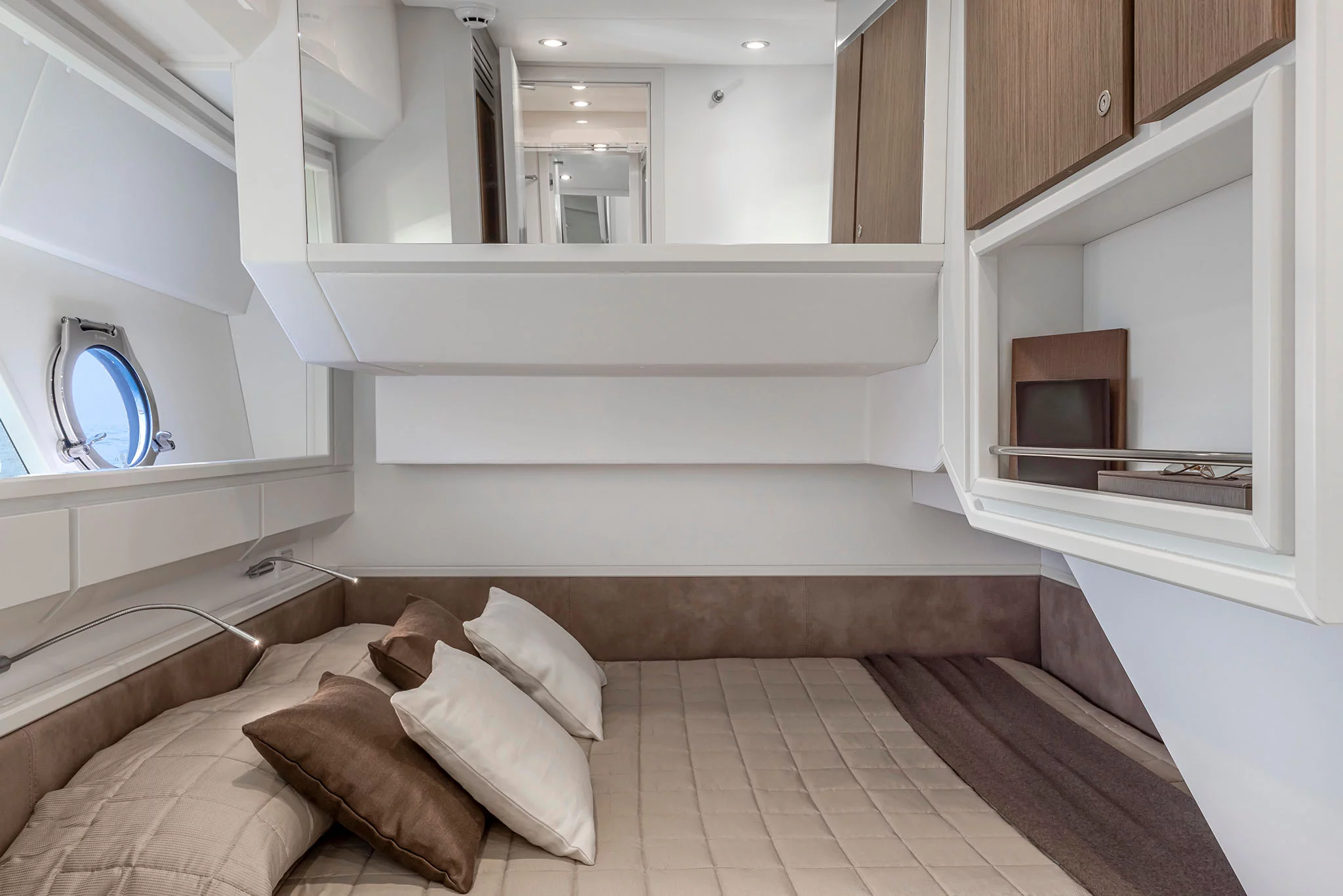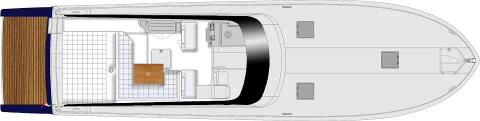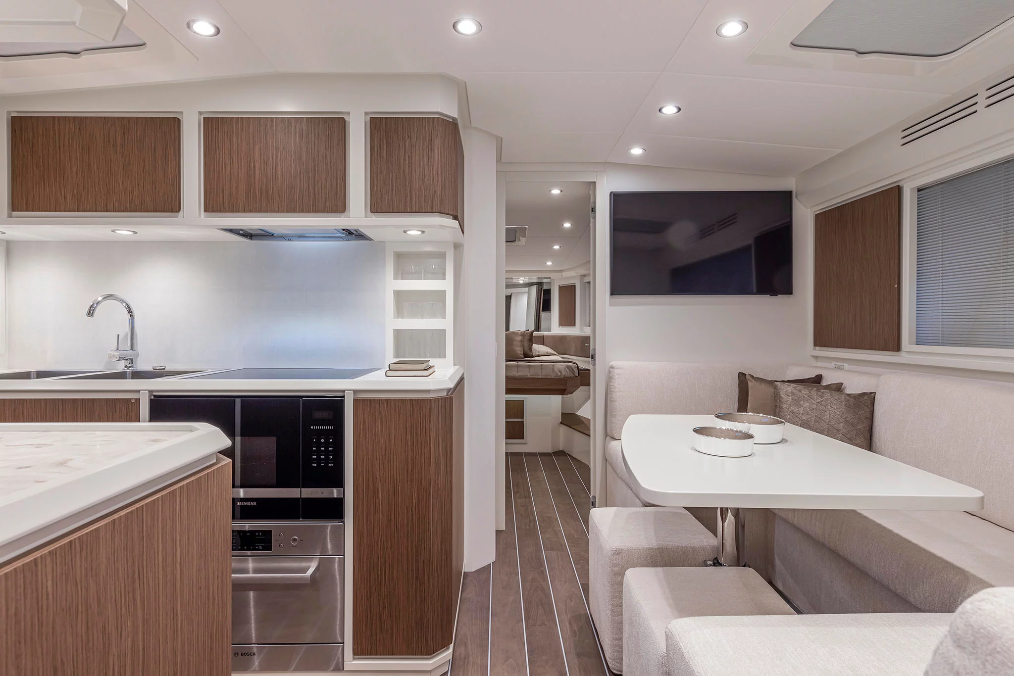 The yacht is uniquely personalisable, offering owners the chance to choose the hull colour and foredeck layout to best reflect their aesthetic taste.