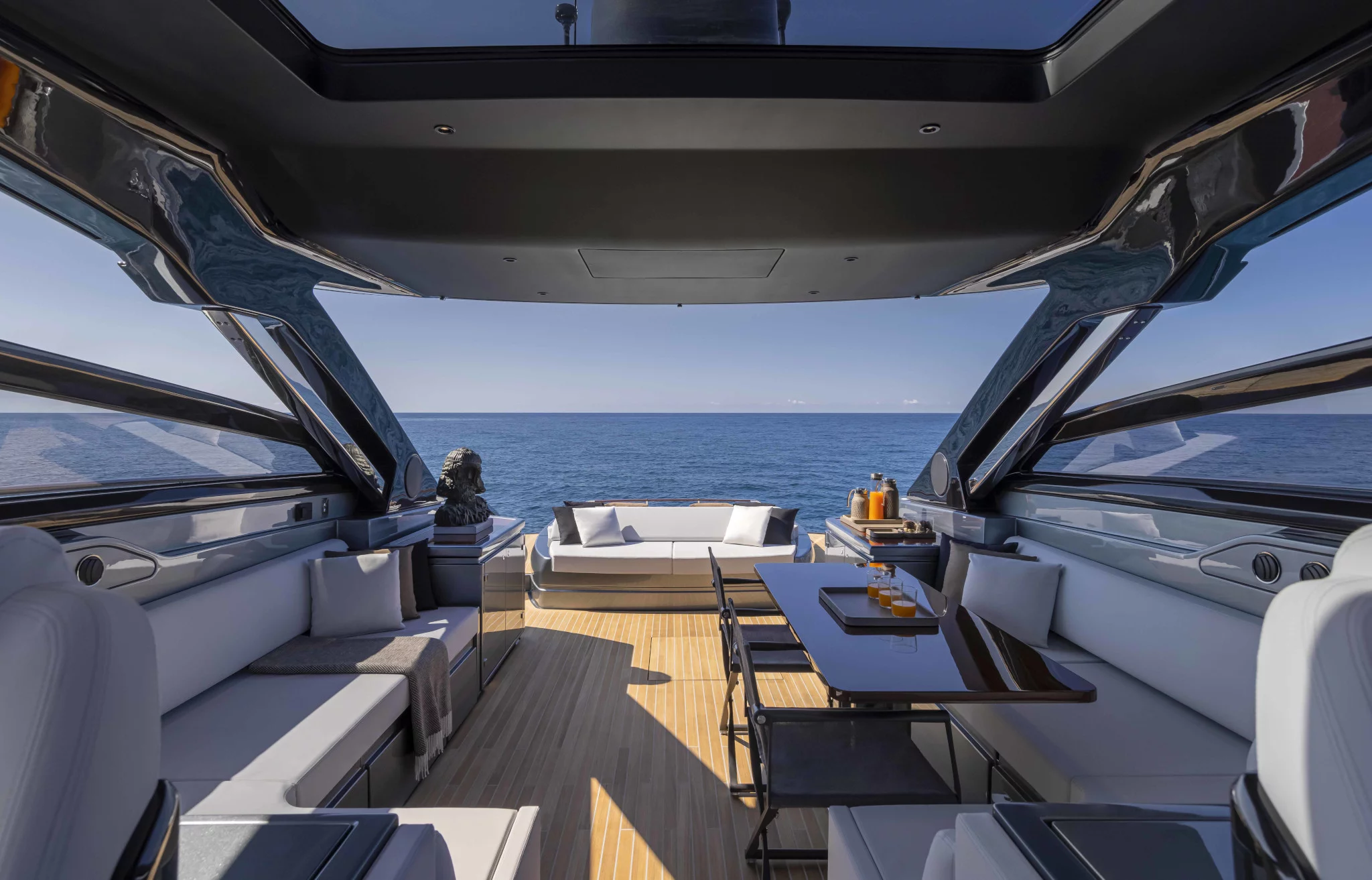 The Riva 68’ Diable embodies elegant power and iconic design. Its sleek, sporty profile is complemented by an innovative hardtop that blends style with function. Outdoors, spacious sunbathing areas and an inviting bathing platform ensure comfort and leisure. Inside, refined materials and a carefully conceived layout offer maximum luxury. A true masterpiece for those who demand performance without compromising sophistication.